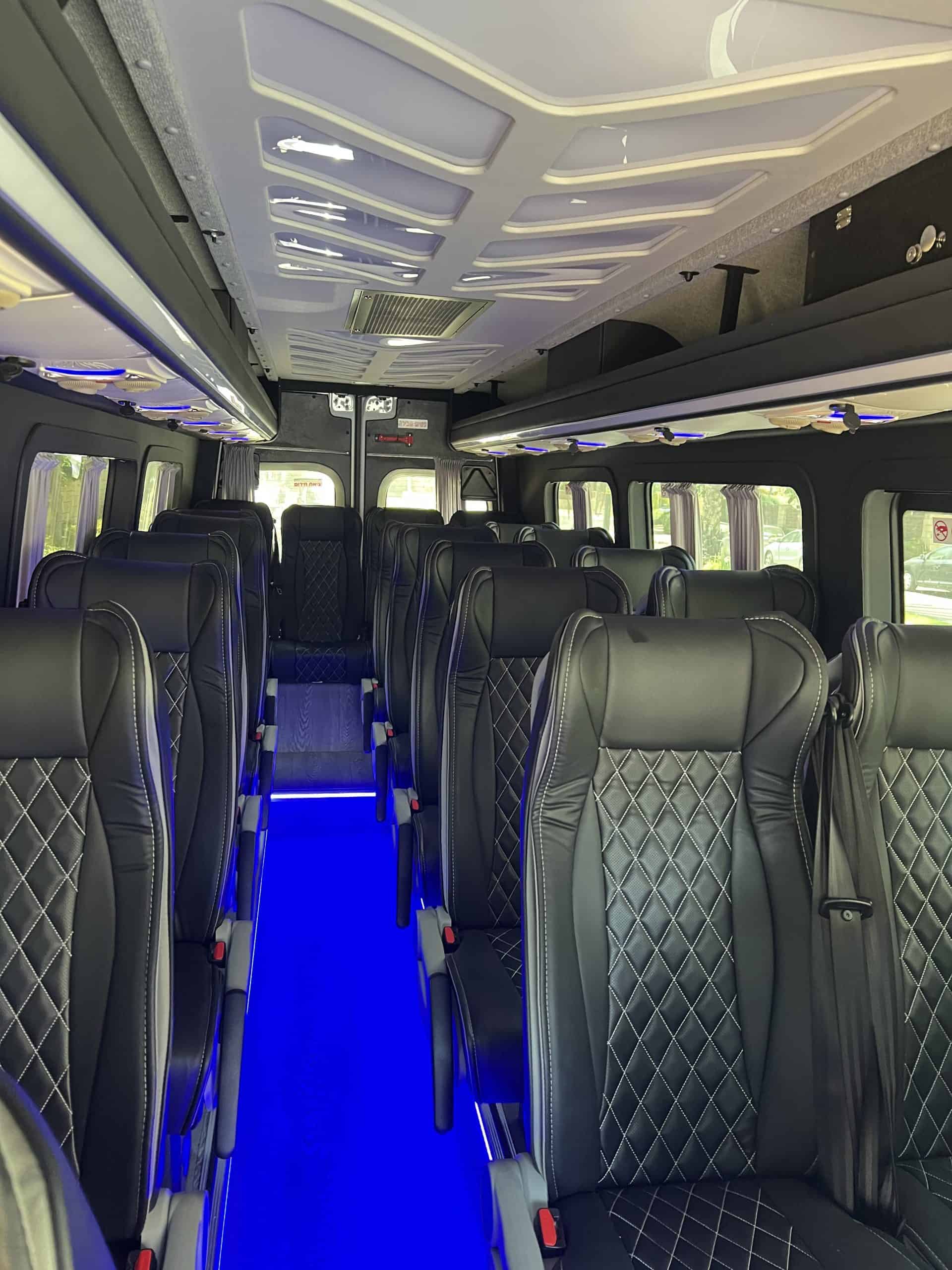 עם מיניבוס מרצדס ספרינטר חדש ונוח – 20 מקומות ישיבה, מיזוג חזק וניקיון מוקפד – כל נסיעה מרגישה כמו לנסוע בראש שקט.
